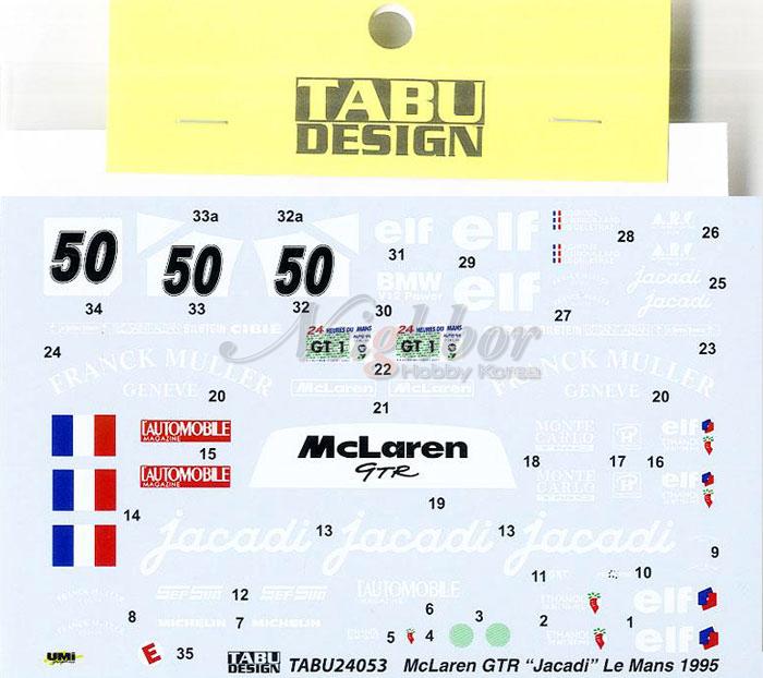| [TAB24053] 1/24 McLaren F1-GTR Jacadi #50 Le Mans 1995 (for Fujimi) | | 1/24 |