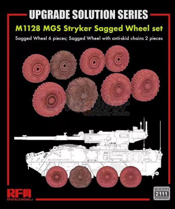 | [RFMRM2109] 1/35 3D Printed Sagged Wheel set w/Anti-Skid Chains (2pcs) for M1128 MGS Stryker |  |