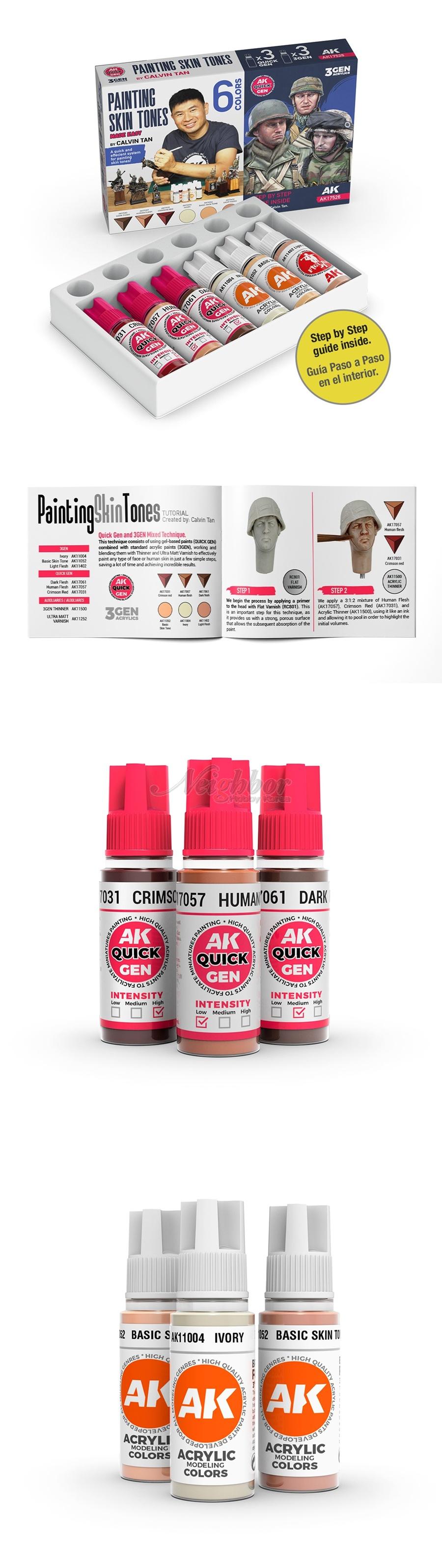 [AIAK17526] AK Quick Gen 6 Color Set Combo - Painting Skin Tones by Calvin Tan (아크릴계)